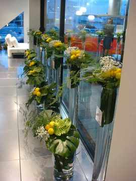 ショールーム内には、お披露目という意味も込めて、お客様からお花を沢山頂きました。それぞれのお客様が、それぞれの形のお花を戴くよりも、デザイナーに統一したフラワー・アレンジ・メントをして貰い、同じデザインのお花を展示させて貰いました。