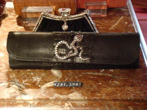 最後は、スネーク・モチーフを止め金具に使ったクラッチ・バッグ。スネークがまるで生きているように感じられるほど、細工が精緻で、素晴らしい。