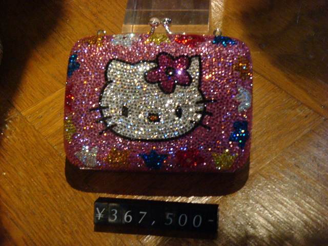 スワロフスキーを散りばめたキティーちゃんのパーティーバッグです。とても可愛い、、けど、値段を見たらちょっとびっくり。アメリカではかなり有名なバッグらしい。でも、キテイーちゃんって、サンリオでしょ。こういった日本のキャラクターが世界的な広がりで通用するようになったというのは、かなり凄いと思った。そういえば、D&GのT-シャツにスーパー・マリオを使っているのを見た事がある。