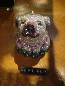 同じくスワロフスキーを使った「豚」のバッグ。とても可愛いし、個人的に一瞬欲しいと思ったけど、値段を見て止めた。実は「豚」キャラってかなり好きなんです。きっと宮崎駿の映画「紅の豚」を見て以来だと思うのだけど、実はこのアニメ20回以上は見たほど大好きです。