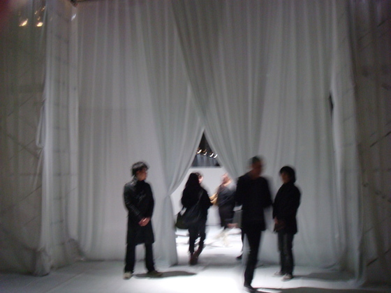コレクション会場の入り口、白い絨毯と、白いカーテン、かなり幻想的な雰囲気で、コレクションーの期待感を演出している。なかなか見事だと思う。