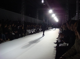 東京を中心の販売なので、地方で扱っている店は少ないし、東京でも扱ってる店がそんなに多い訳ではない。まあ、所謂「服好き」の人の服だと思う。そのコレクションの招待状を貰ったので行ってきた。国立競技場の敷地の中の、屋根のある場所に特設会場を作ってのコレクションだった。勢いのあるブランドなので、かなりコレクションも金がかかっているのが良く分かる。
