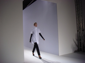 コレクションは最近のグリーンの変化を感じさせる内容で、シンプルで、しかもラインが美しく、 green らしい丁寧なデザインで好感が持てた。それと、モデルが凄かった。こういたコレクションは何度も見ているが、ここは特別だった。きっとパリあたりでモデル・オーデションをして連れてきたのだと思う。背の高さ、足の長さ、顔の小ささ、見事に揃っていて驚いた。