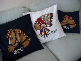 以前にブログでも紹介したように、熊谷さんに頂いた今期のGDCの服が最近自宅に到着したので写真に撮ってみました。クッションとG-ジャンです。インディアン・モチーフがカワイイ!!