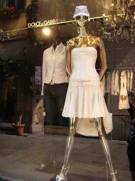 お馴染みのドルチェ&ガッバーナは、なんとマネキンまでゴールドだった。店内にはゴールド素材の服やアクセサリーが溢れていた。