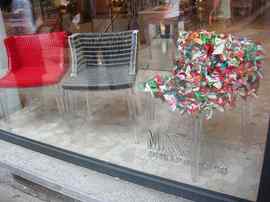 ご存知と思いますが、ミラノ・ファッションの中心的なショップはミラノの中心であるサンバビラからモンテ・ナポレオーネ通り、それとそこから分かれるスピーガ通りに殆ど集中してます。従って、この辺りをうろつけばミラノ・ファッションの定点観測なるものが出来るわけです。有名なインテリアショップもこの辺りに数多くあり、まさにインテリアとファッションの融合が進んでいるとも言えます。事実、アーキテクトの中にはバッグやベルトやアクセサリーのデザインをする人は珍しくありません。このことがファッションとのトレンドとインテリアのトレンドの関連性を強めている理由だと思います。