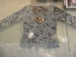 クリッツィアのカットソー、薄く透ける素材に散りばめた光り輝くシルバーの模様は何で出来ているのだろう?触ると溶けてしまいそうな繊細な質感がはかなげで好感が持てる。