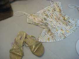 ゴールドのサンダルとトップスとバッグ、、日本ではあまり見たことがないブランドだった。私が知らないだけかもしれない。