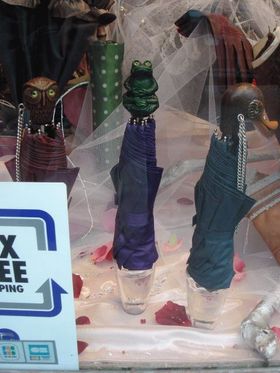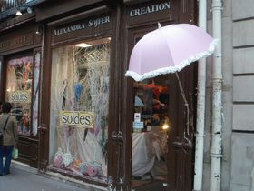 写真はサンジェルマンで見つけた「小さな傘のお店」、店の中でおばちゃんがミシンを踏んで傘を作っている。