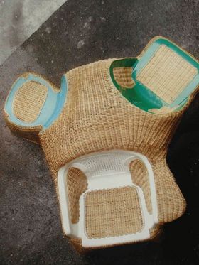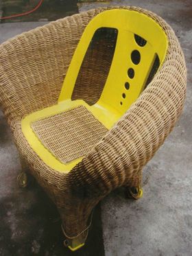 大量に生産されたものも、こうやって籐のようにハンドメイドのクラフトに近い素材との組み合わせで、こんなにも暖かく、生き生きとしてくるんですね。
