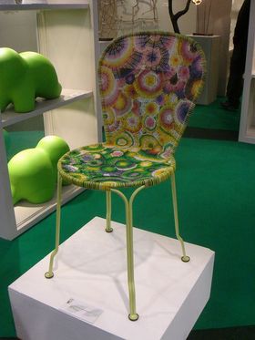 写真(左)はハンド・メイドの椅子。刺繍がカワイイ