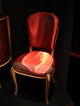 個人的に気に入った椅子。サテンの生地とクラシカルなイメージが美しくマッチしている。ベースはクラシックなんだけど、妙に時代感が表現されてモダンなイメージが不思議な雰囲気をかもしだす。チークの床とスタッコの壁の直線的な回廊の先に、一つだけこの椅子が置いてありダウンライトで照らされているという、、、そんなイメージ。または、玄関をわざわざ狭めで長いL型にして、玄関を開けるとこの椅子が一つ目に飛び込んでくるとか、、そんなイメージかな