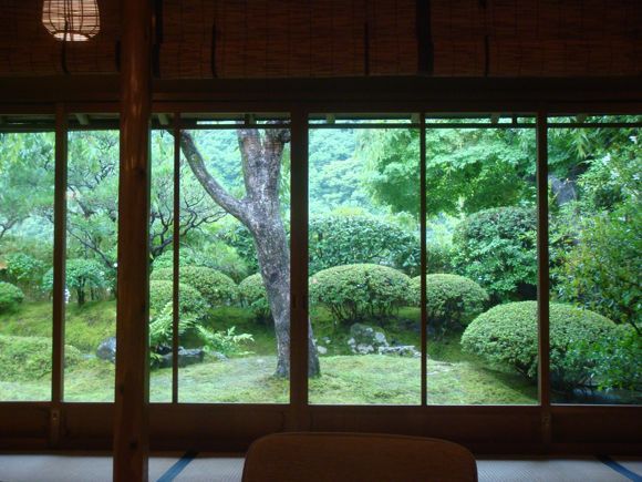 窓越しに見るお庭の新緑が一幅の絵を見るようで清々しい。
