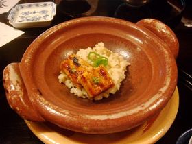 お料理の方はさすが「吉兆」と思われる美味しさだったけど、特に印象に残ったのは最後に出た「牛蒡のリゾット鰻添」だった。