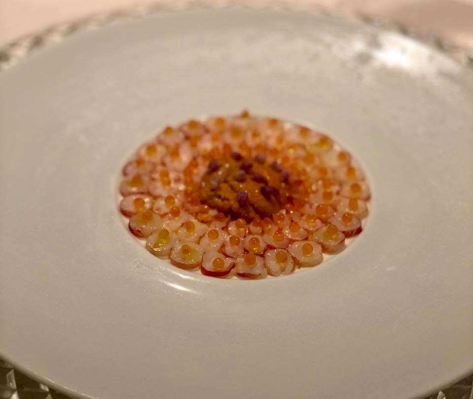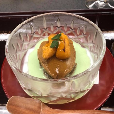 特に最初の写真、車海老と雲丹の一皿は崩して食べるのを一瞬ためらうほどの美しさでした。