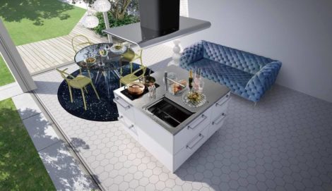 そんな志向を持ったご夫婦への提案は従来は「壁付けタイプ」や「ペニンシュラ タイプ」の提案しかできなかったのですが、この「キューブ」を使うことで本格的な「アイランド キッチン」を楽しむことができます。