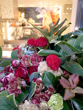 【写真:お祝いのお花もたくさん頂きました!ティツィアーノをバックに。】