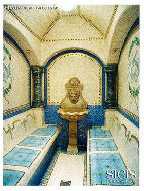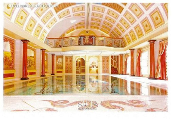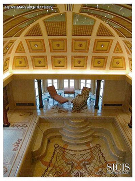 SICISベネツィアンモザイクが敷き詰められたプール&スパ。