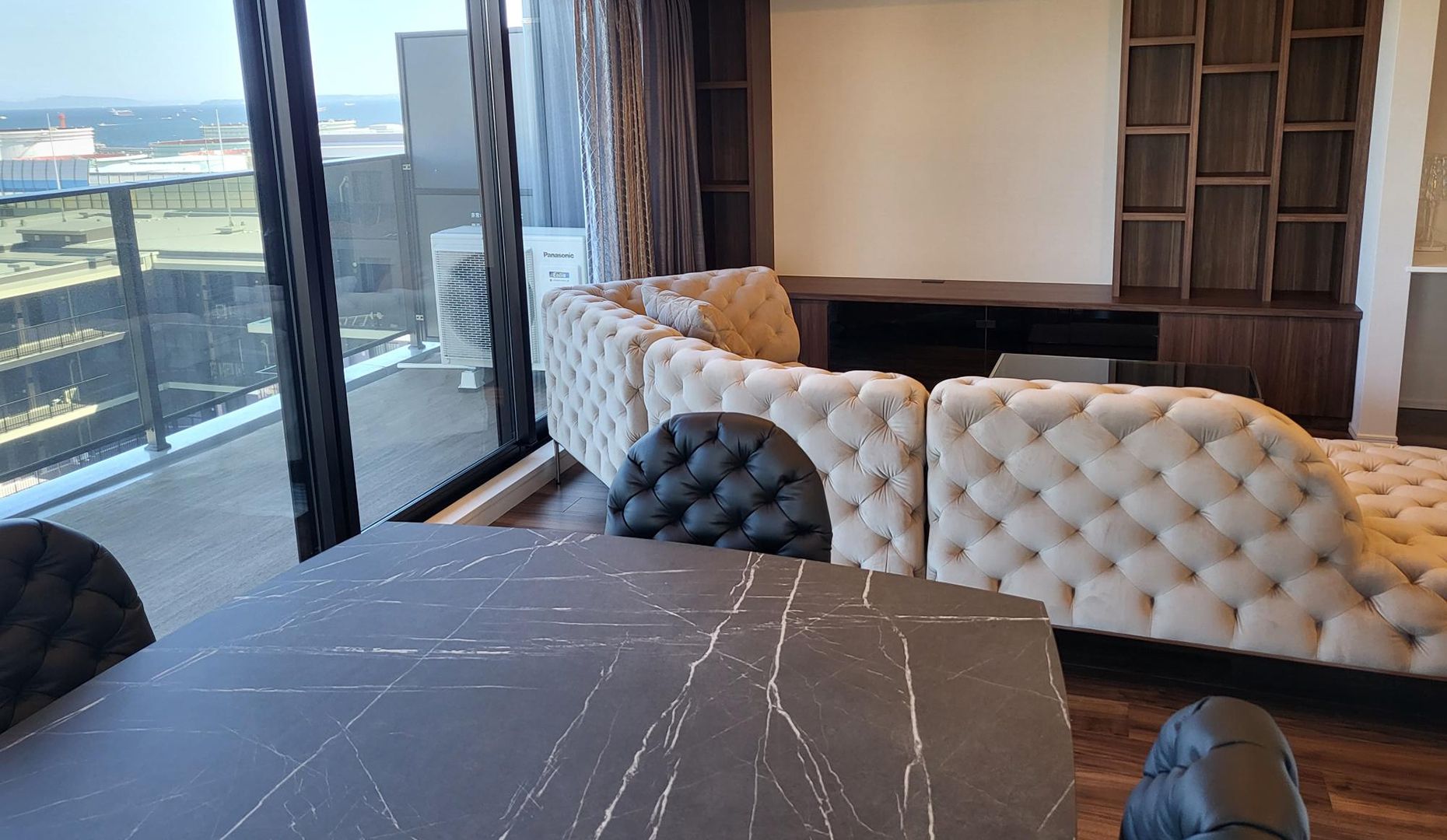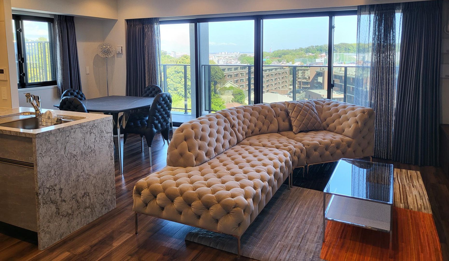 同シリーズで揃えることで統一感があり、またチェスターフィールド調の座面が高級感を醸し出しています。