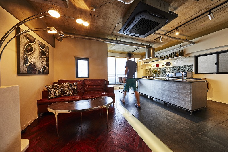 細長い間取りを活かして、キッチンの隣にキッチンと同じ高さのカウンターテーブルを設置しました。