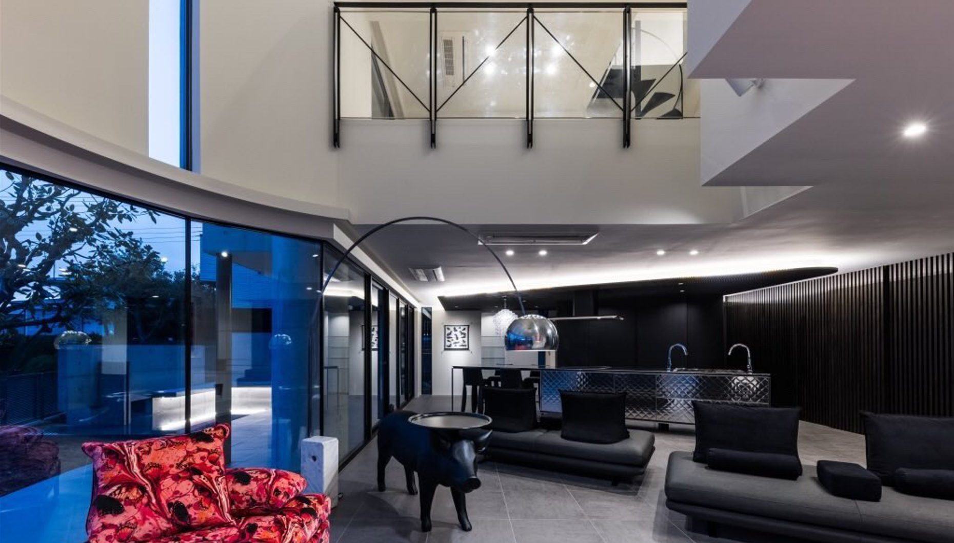 キッチンと一緒にコーディネートされたのはアート性の高いインテリアの数々。特にファッション関係者からのラブコールも多いmoooiの家具がたくさんセレクトされています。キッチンには扉と同じキルティングモチーフが施されたモンスターバースツール。リビングにはピッグテーブルがかわいく鎮座しています。吹き抜け部分には人気のレイモンドもご採用いただきました。