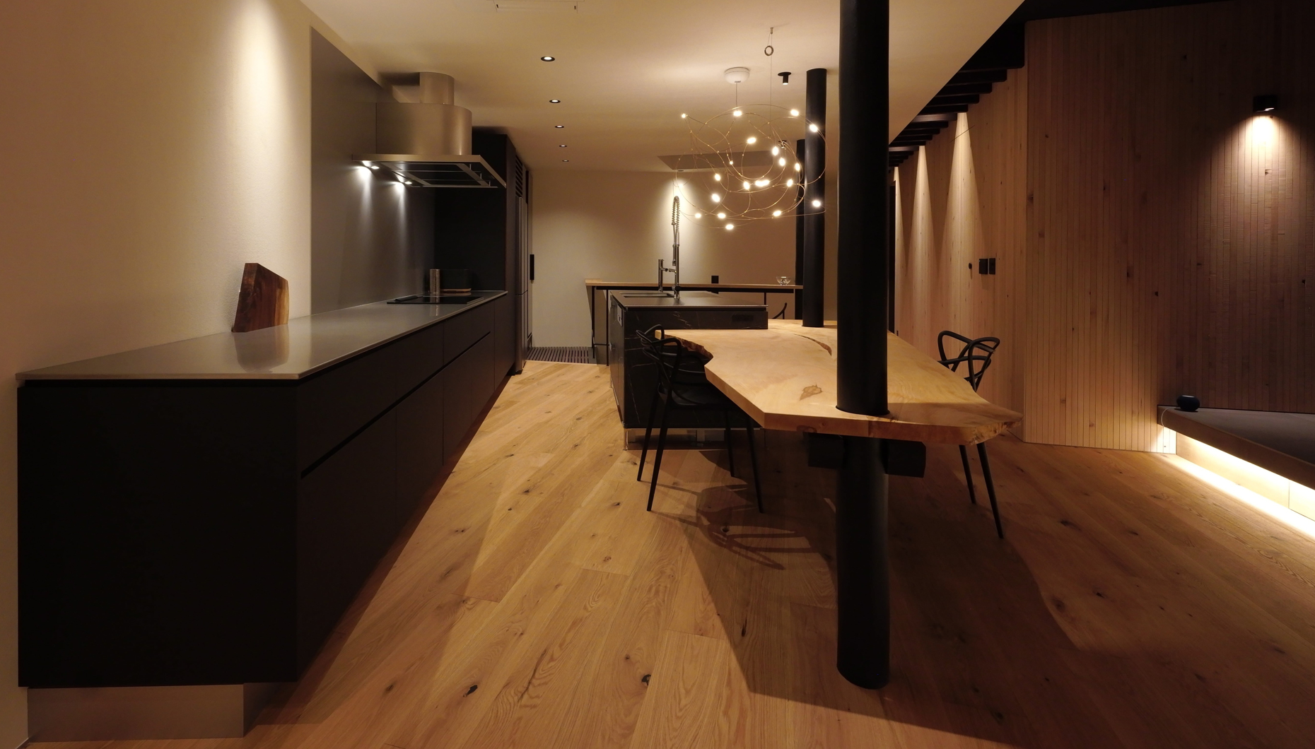 印象的なmoooiの照明「フロックオブライト」も合わせてご採用いただきました。