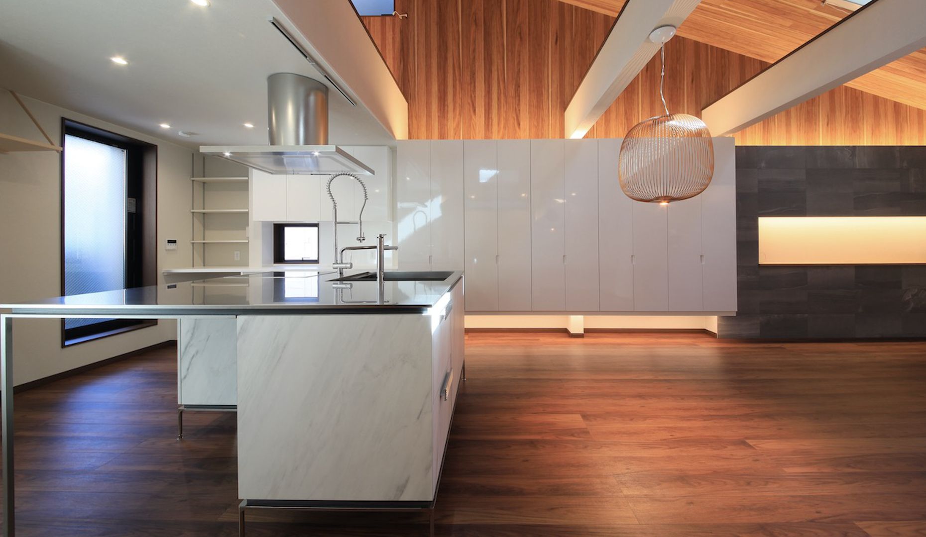 3FリビングでLDK空間を広々活用できるように、また二人での食事の際はキッチン部分で完結出来るQ-LANDをご採用いただきました。