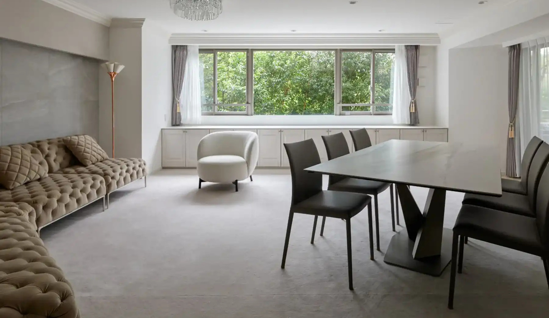 インテリア全体のカラーも統一され、生地のカラーはオーダー色のサンドがやわらかな印象です。