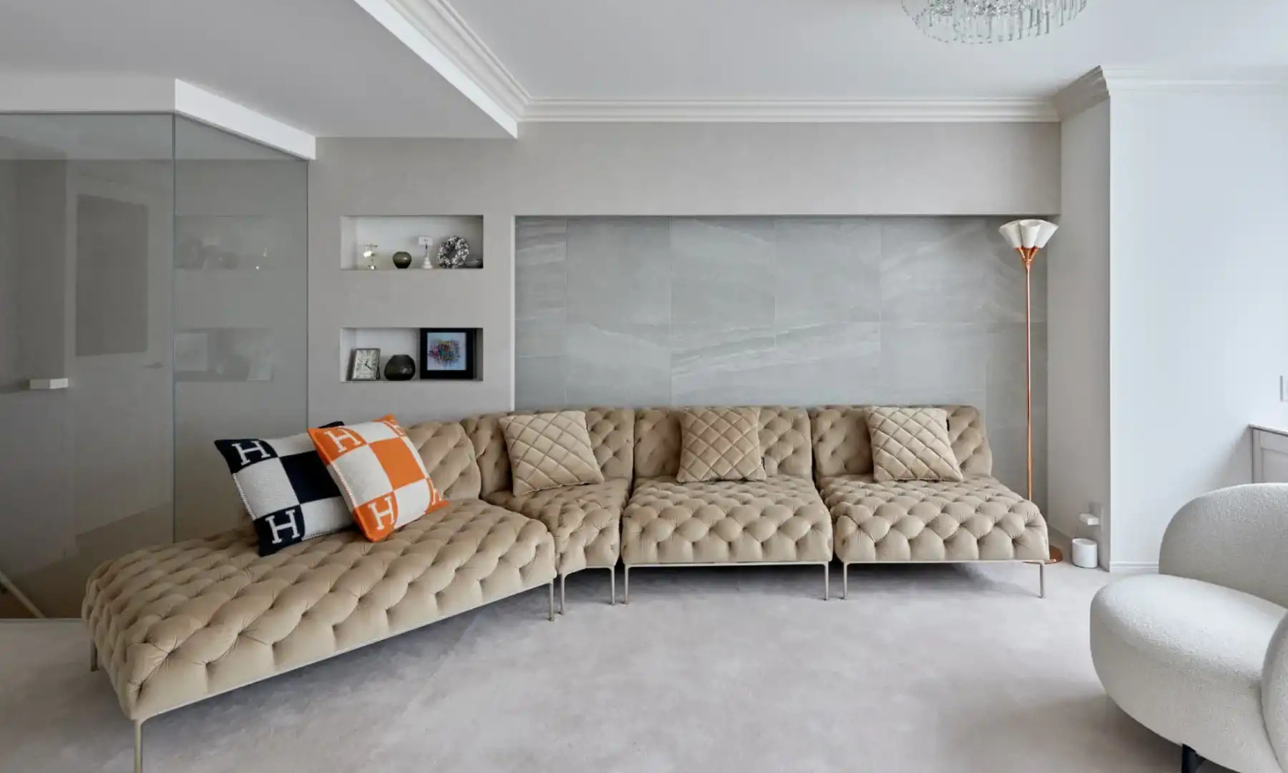 ベルベットのファブリックや、サロンのイメージに合うエレガントなデザインを気に入っていただいています。