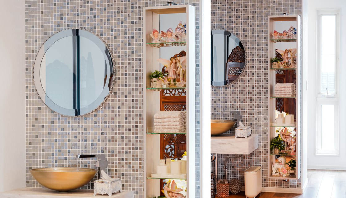 収納:マイアミ(扉:SICISモザイクタイル/アイピクス オータムブラウン)