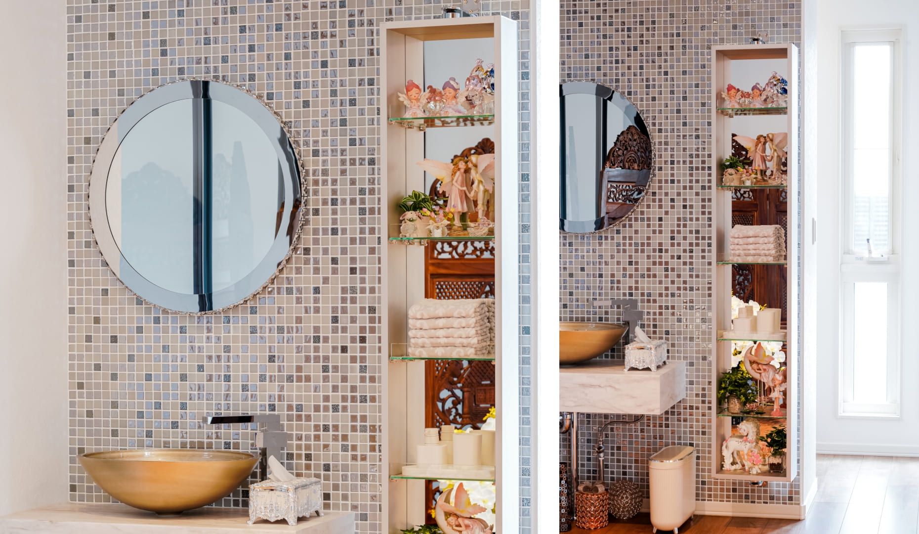 ゼロ動線キッチンやインテリアと合わせて、玄関とLDKの間の洗面コーナーにミラー、洗面ボウル、水栓もご採用いただきました。