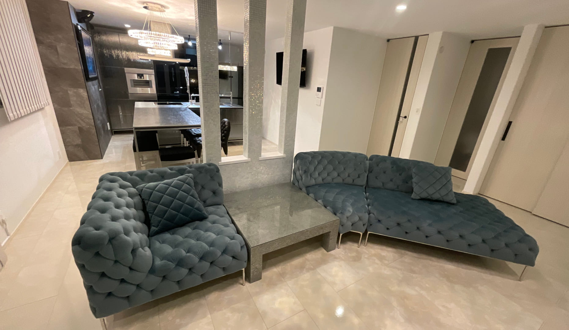 さらに、キッチンに合わせてリビングのソファも買い替え。「集(つどい)」のデザインと座り心地を気に入っていただき、家族が自然と集まる心地よい空間が広がりました。