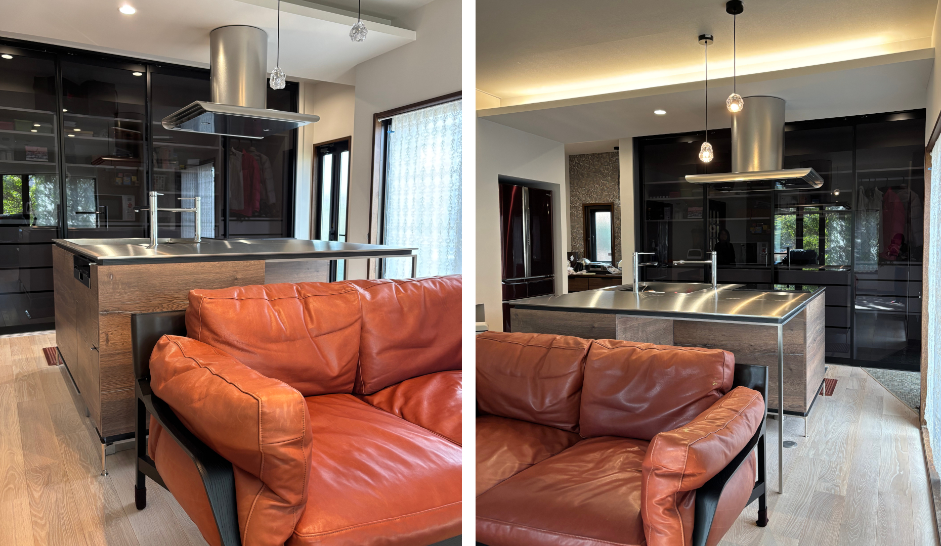 腰壁のあるペニンシュラキッチンから、正方形のQ-LANDへ間取りを変更され開放的な空間に生まれ変わり開放感のある空間へ。
