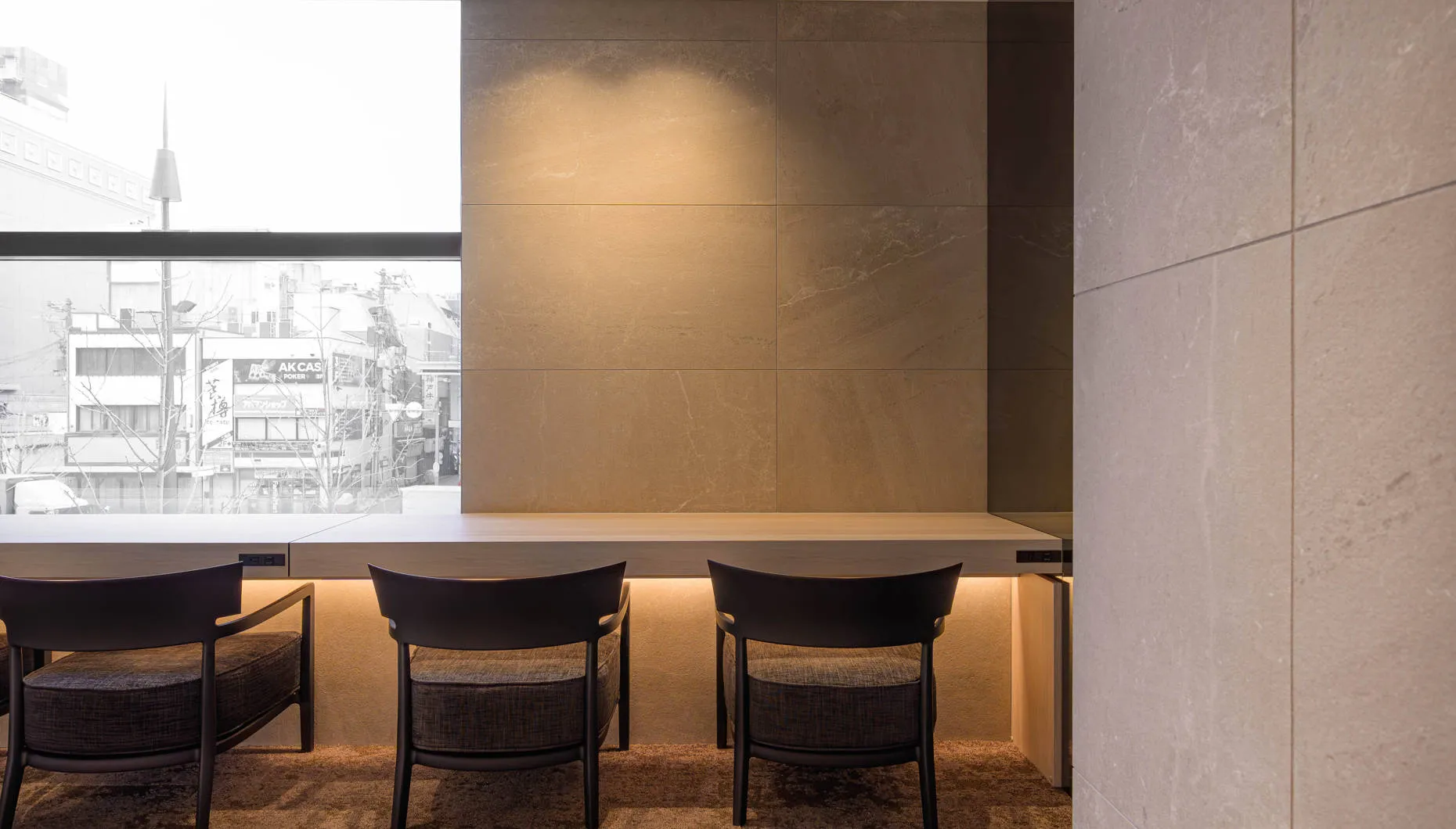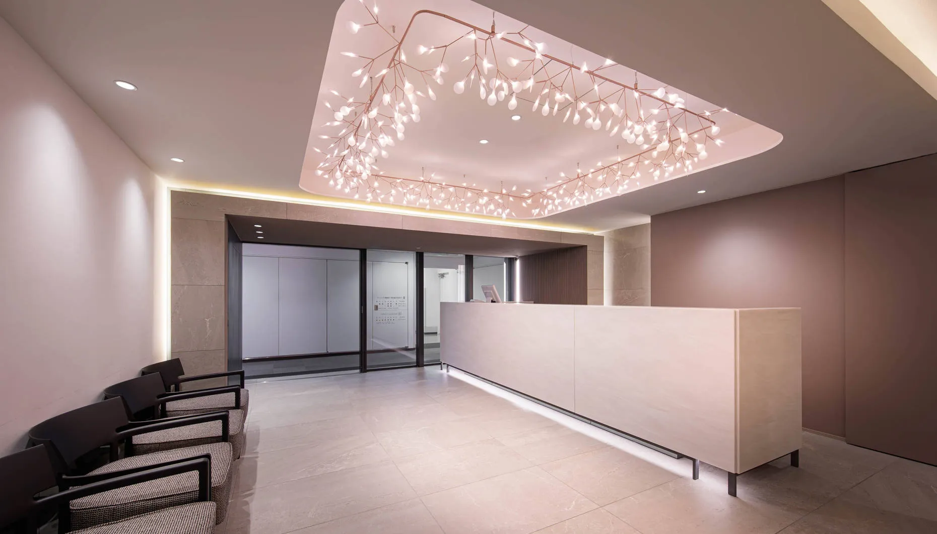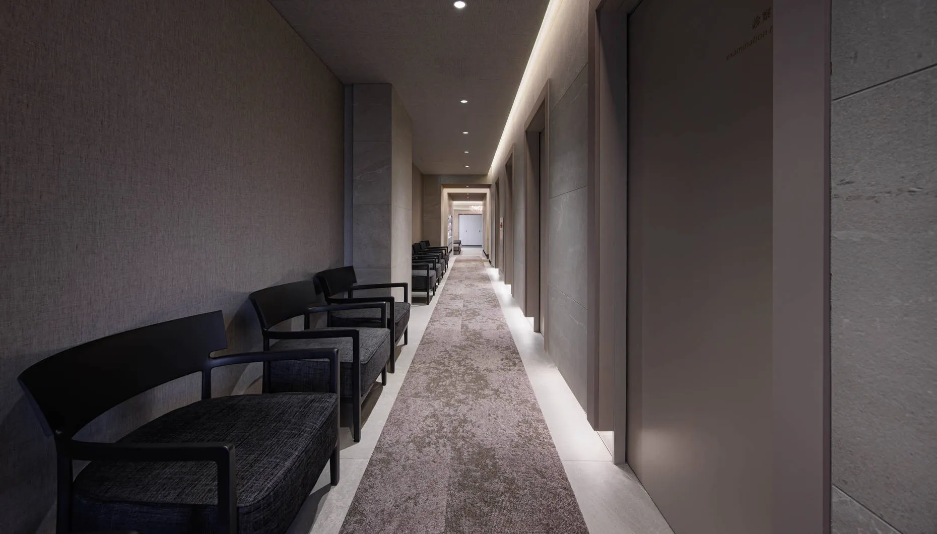 患者様の待合スペースには、パーソナルな距離感を保ちながらゆったりと座れるカーラをご採用いただいています。