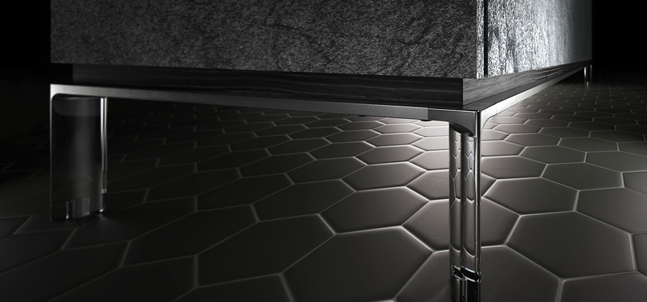 全新终极纤细设计的airflow。没有任何不适感,从存在感十足的不锈钢基架到立体脚渐变消失的细腻的设计,实现了厨房浮动的“浮游感”。