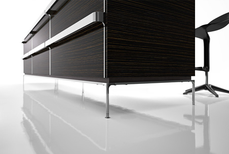 东洋厨房时尚用品独家舒适的厨房脚“airflow”。宛如一块漂浮在空中的厨房。没有任何不适感,从存在感十足的不锈钢基架到立体脚渐变消失的细腻的设计,实现了厨房浮动的“浮游感”。