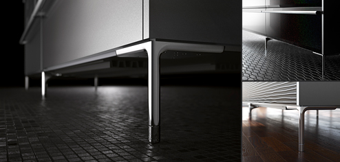 水槽周围很容易潮湿,尤其当底部覆盖有垂直板时,屋内容易产生灰尘或螨虫,可以说属于危险区域。airflow将厨房整体从地面浮动,防止底部积累潮湿,保持厨房卫生,易于清洁。