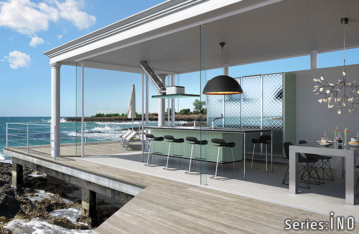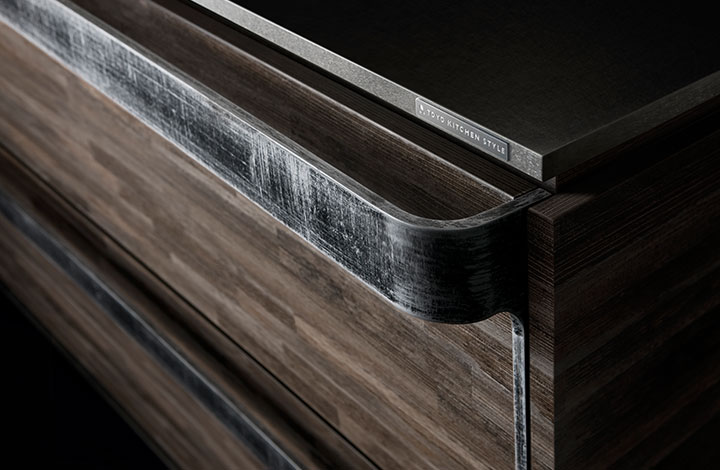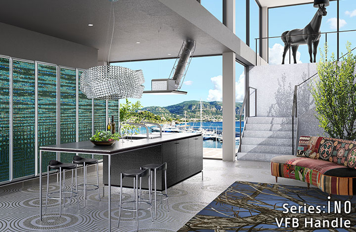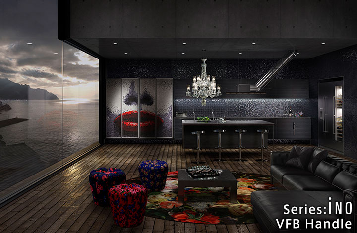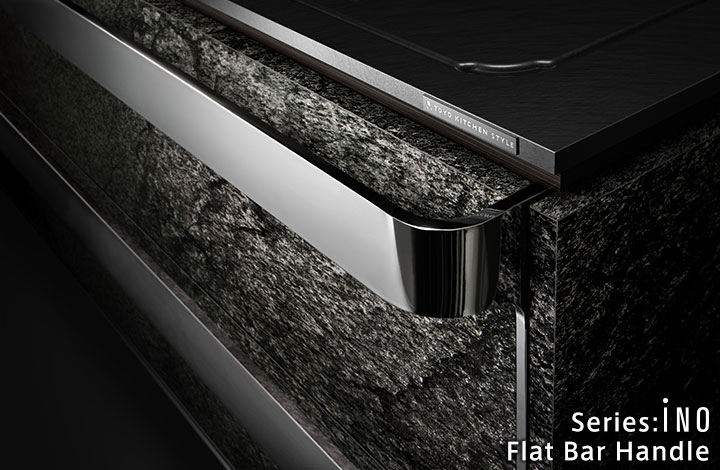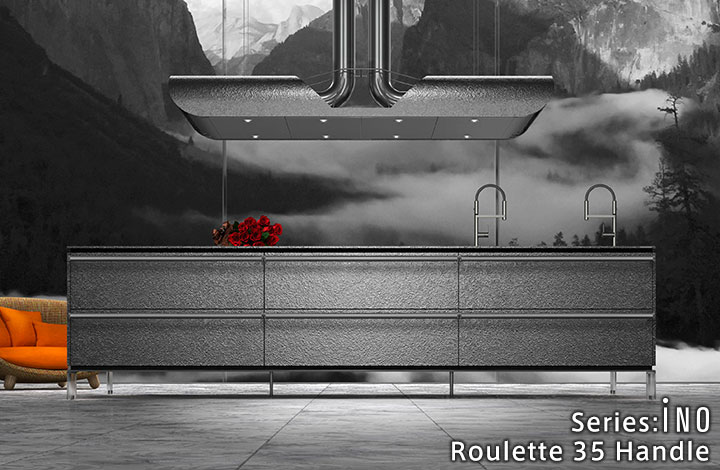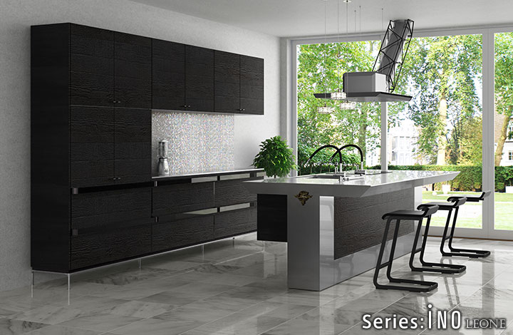 天然石的奢华感。使用了通过特殊技术制作的天然石的厨房门。