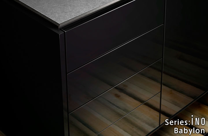 无把手的Babylon标准装备了全电动开启抽屉的“伺服驱动系统”。即使手脏或拿着锅,也能用膝盖轻推轻松全开抽屉。当然通过阻尼系统也不费吹灰之力地关闭抽屉。可与全部门材料组合。