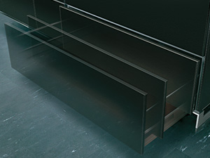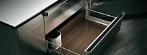 用于存放厨房周围的小物件的4层抽屉。不锈钢毛丝面加工,手柄完全被平面化处理,不会碍手碍脚,完全匹配厨房整体的简约而巧妙的形象。