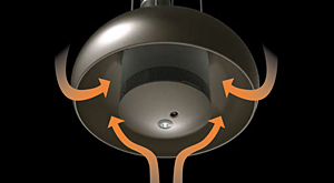 圆顶形设计能让周围蔓延的烟雾也能重新吸进,通过倾斜的边缘迫使已经飘散的烟雾强力吸进烟道。比起大面积捕捉烟雾,更能有效地捕捉烟雾。