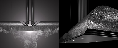 中心式抽油烟机的“MANTA”是分析烟雾的流向设计外壳的抽油烟机。为自然地收集空气,提高捕捉效率而打造的形状美丽且表面平滑弯曲,宛如在大海中遨游的蝠鲼。完成了与众不同的设计。
