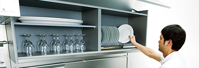 轻按柜门就能轻松操作,可自动地开闭柜门。厨房里的操作更加顺畅,实现流动的动线的新系统。内置的传感器探测地震的震颤后停止供电。紧急情况下防止从壁柜里坠落。