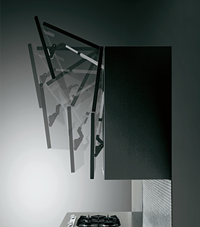 视线高度上使用的Wing Tip 收纳柜采用了电动开闭系统。