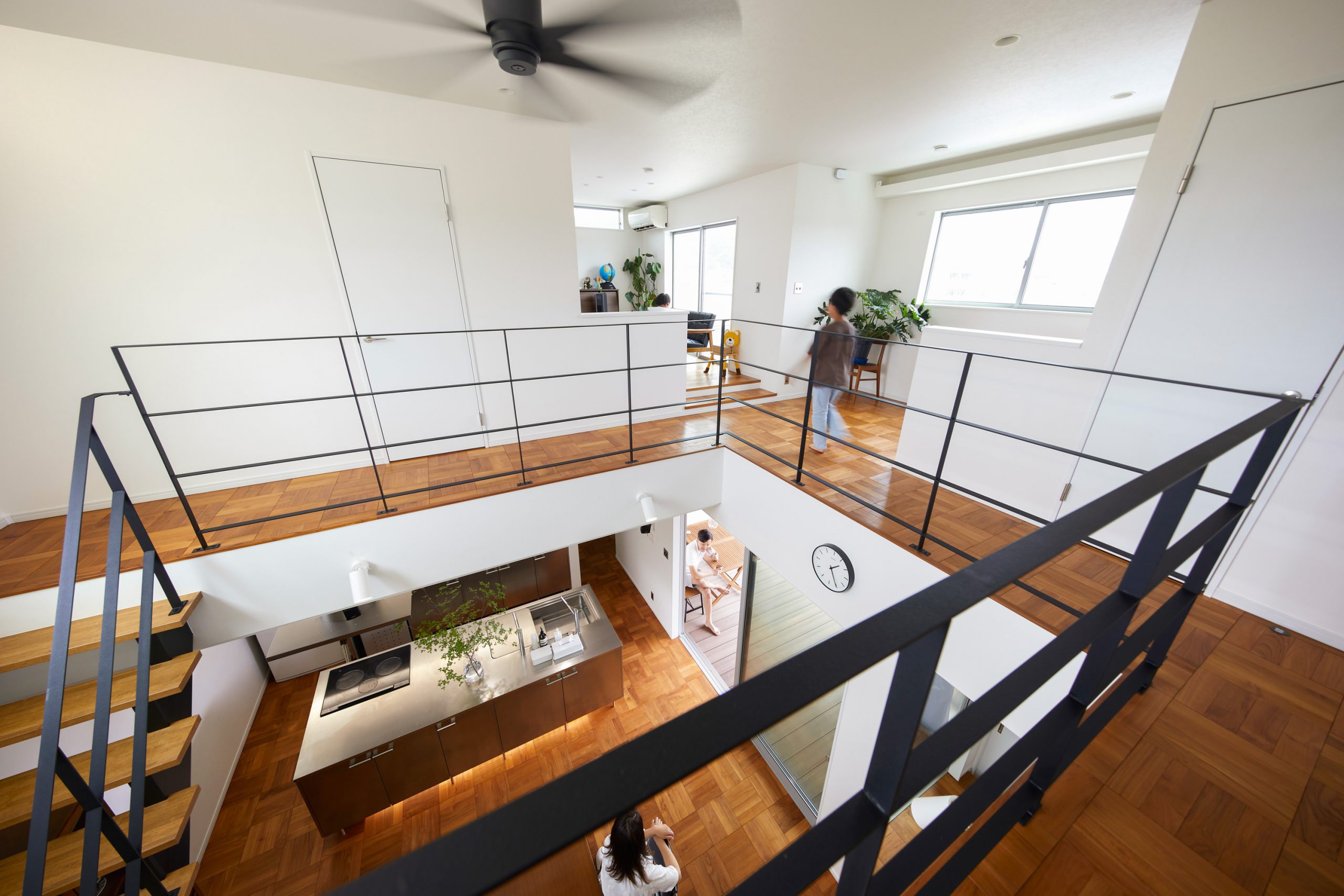 The kitchen is installed in the center of the space with a bright and open atmosphere. People naturally gather here, making it a special place for people to cook and eat.