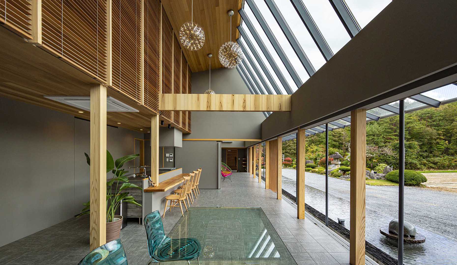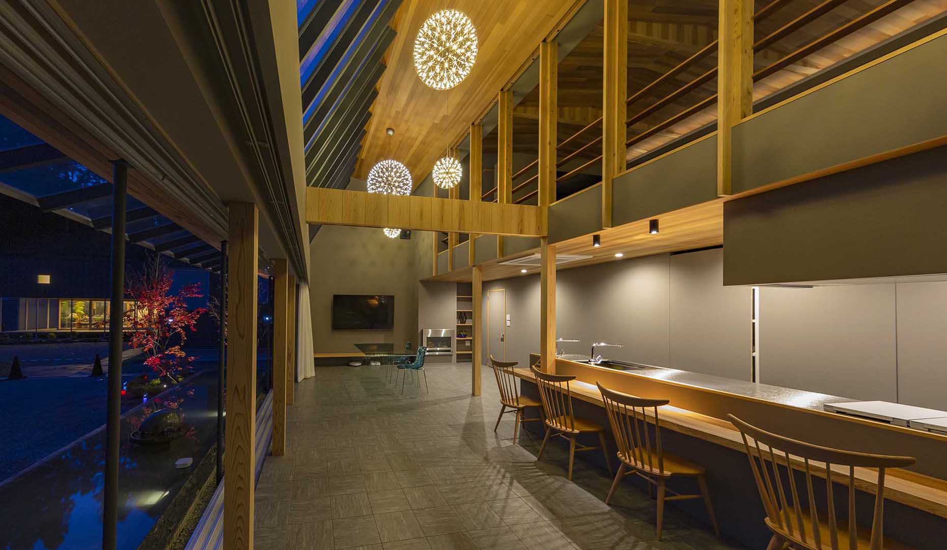 The facility is located on a large site and will be used by many people as a seminar house, so we adopted a Toyo Kitchen Style system kitchen that is appropriate for a symbolic facility.