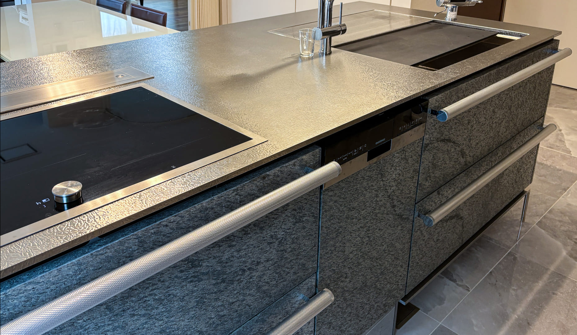 Gaggenau table ventilation is built-in to match the IH heater, and the space is clean without Range Hood.