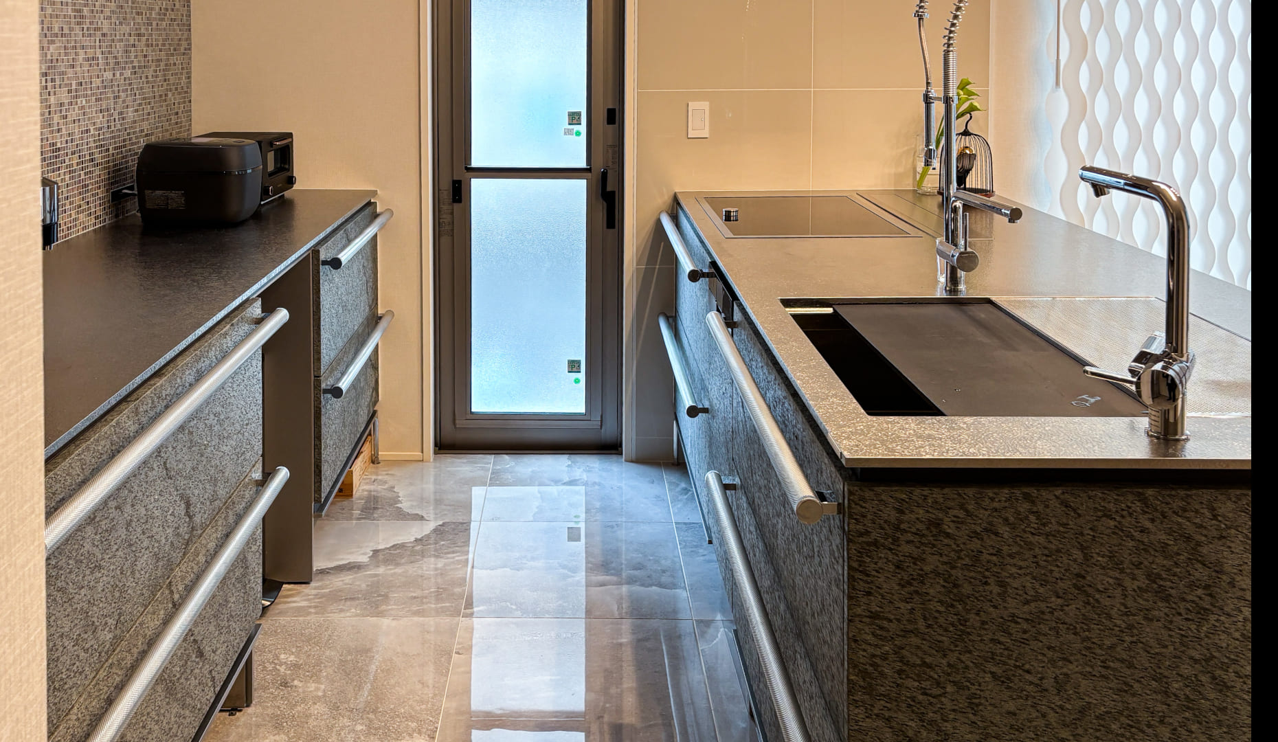 It shows a rich expression depending on the angle of the light. Simple and beautiful, this kitchen will bring you a sense of comfort every time you use it.