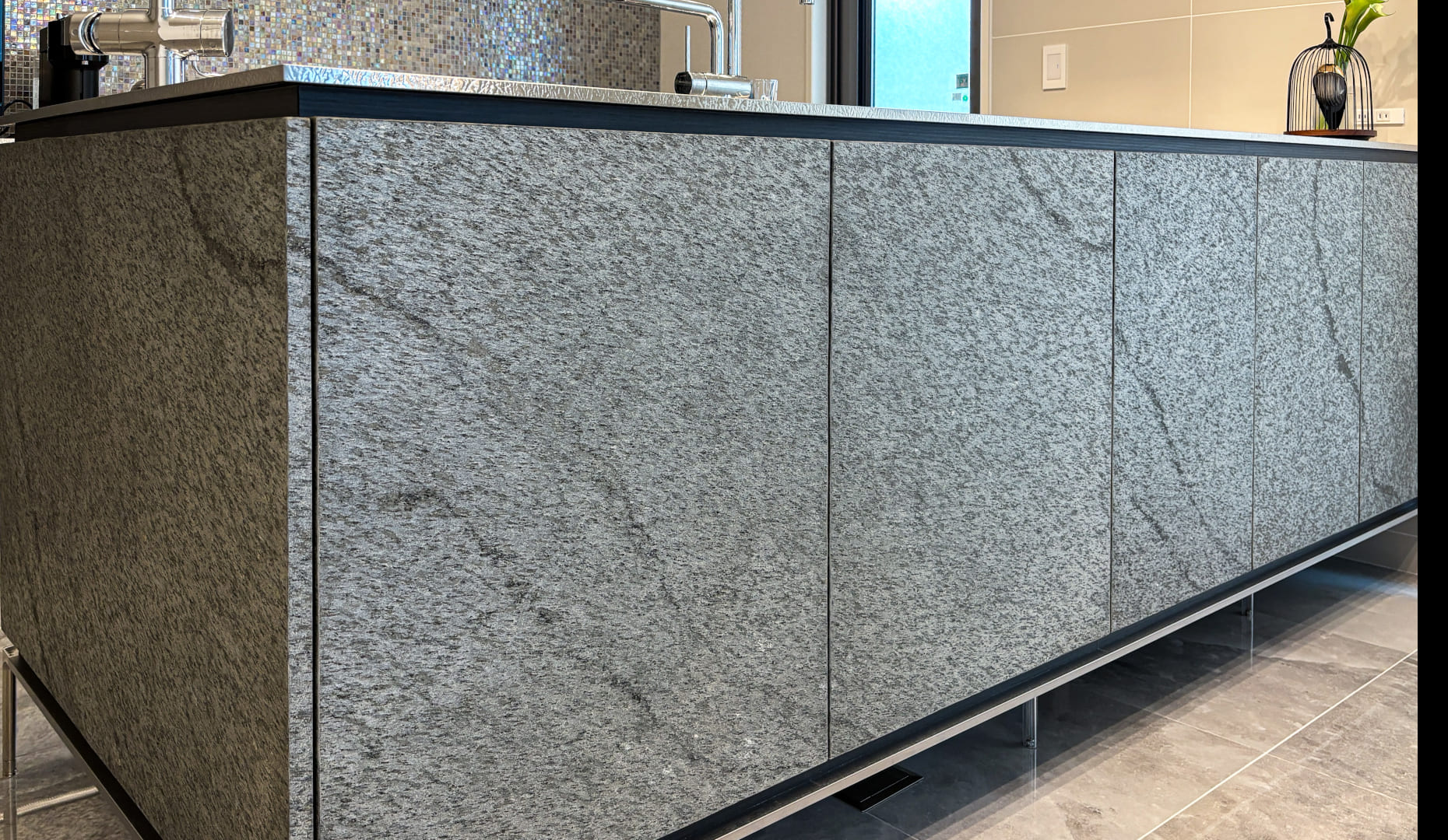 The iNO Stone Natural chosen for the remodeling has an appealing sense of dignity and luxury created by real natural stone.