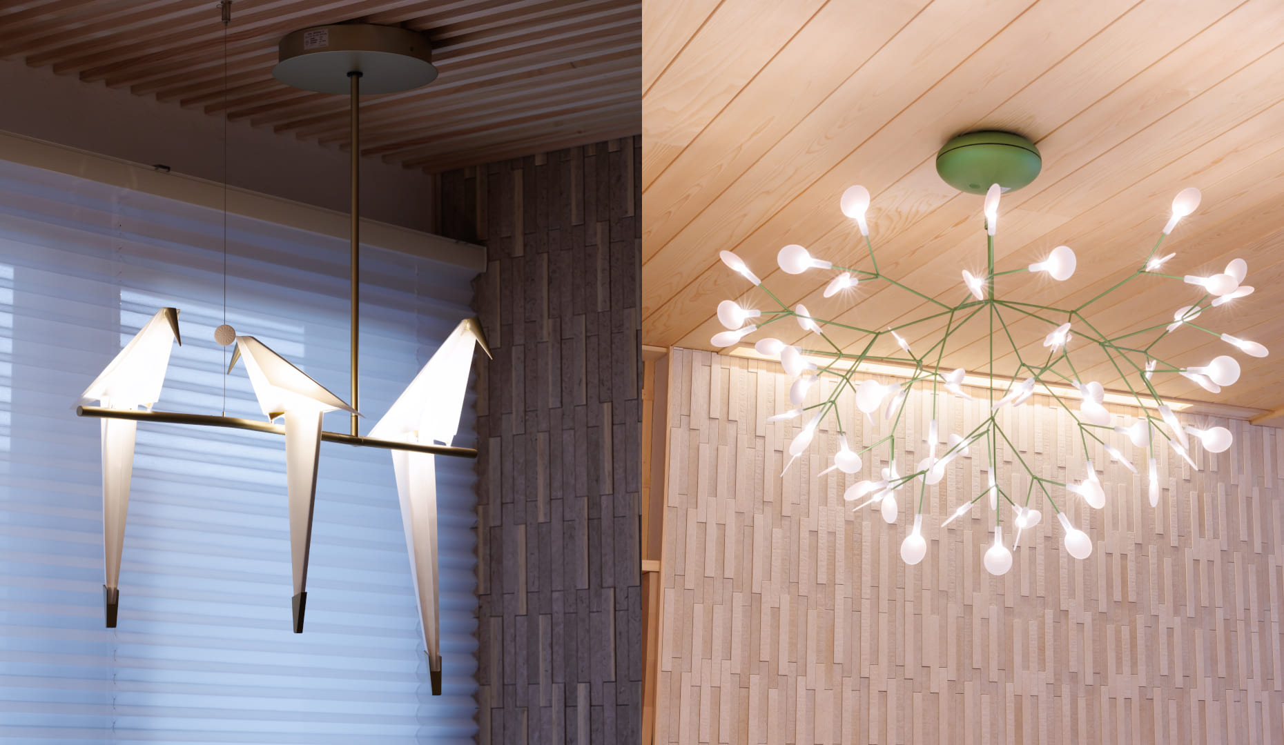 照明:ヘラクレウム3、パーチライトブランチS、パーチライトウォールL、バレンタインクロームLED(moooi)